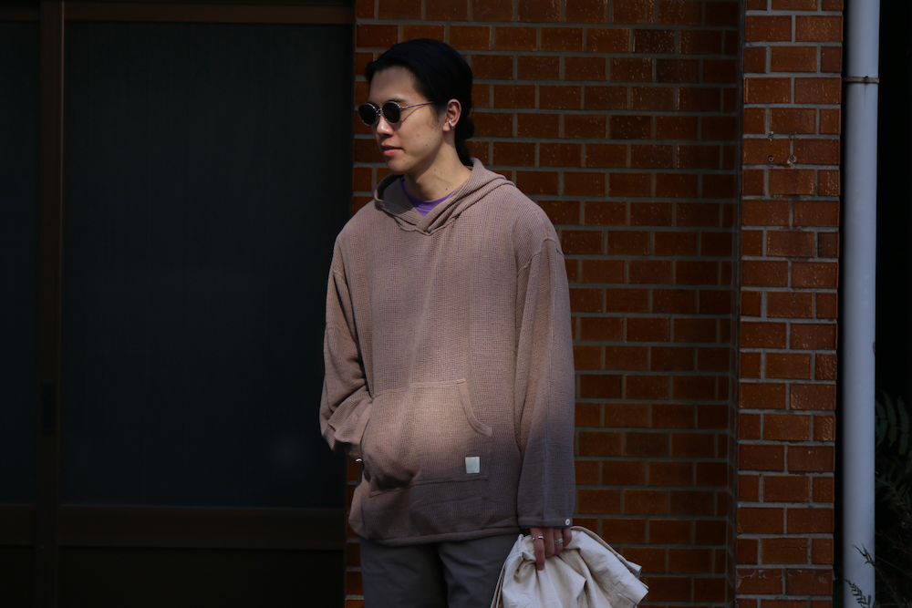 一見すると気になりませんが、よく見ると独特の在在感を放つこの工夫により、ベーシックなアイテムに個性的なアクセントを加えています。