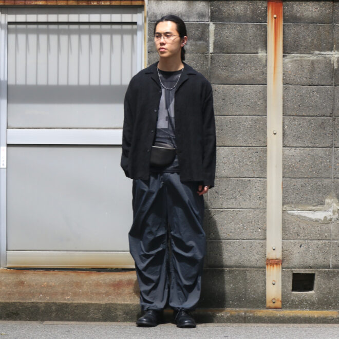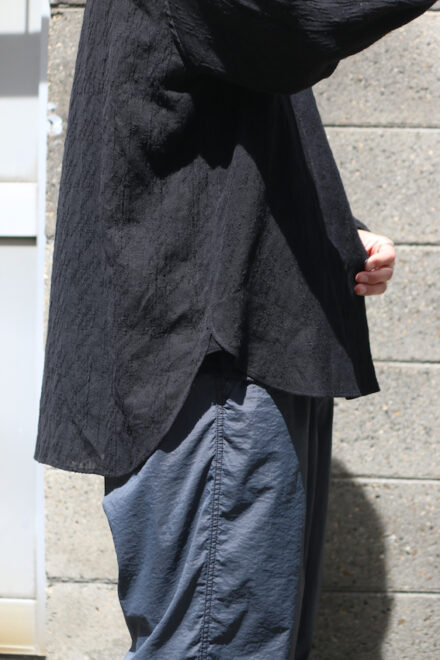 ベースはパジャマシャツをベースにリラックス感のあるシルエット。